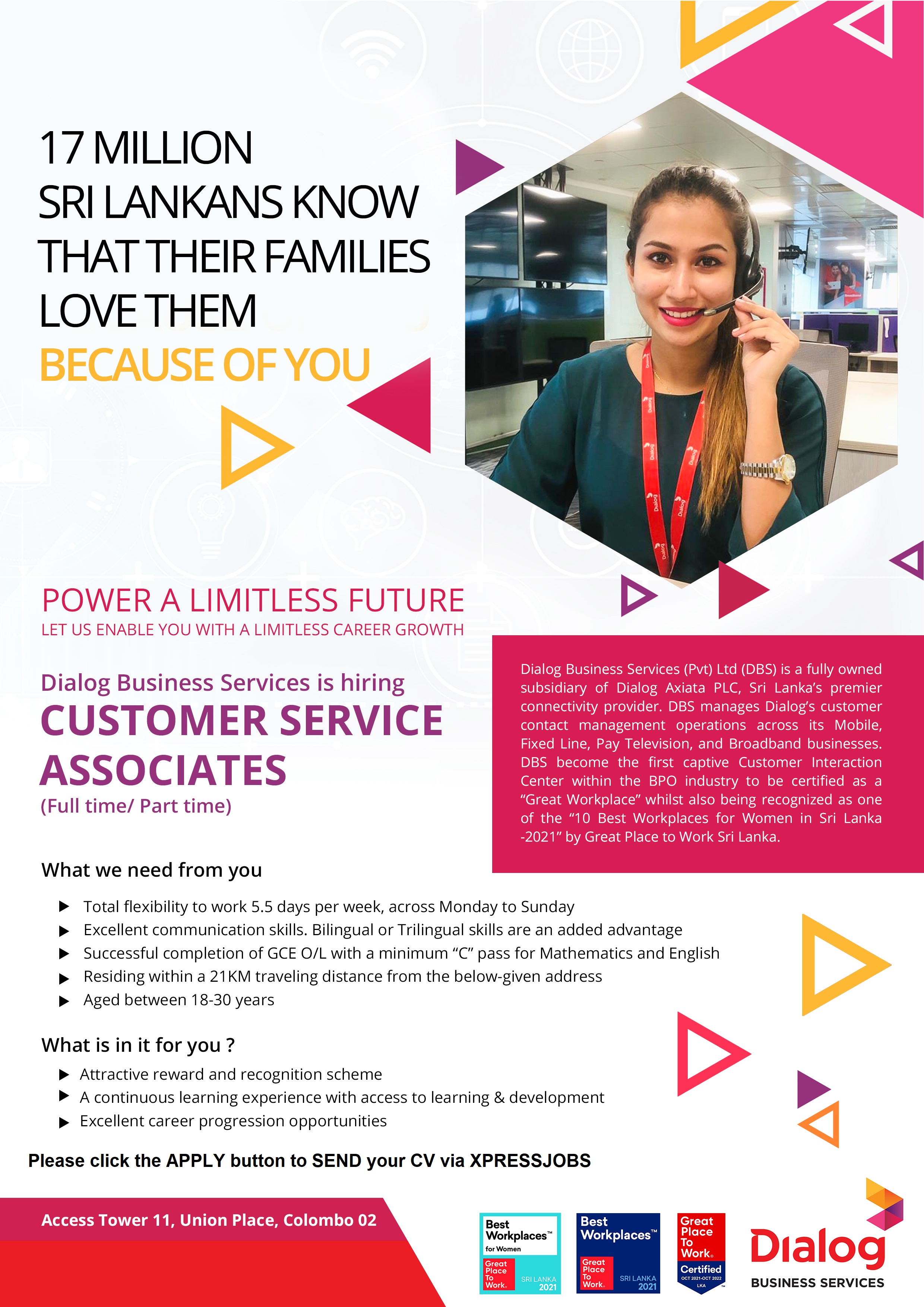 Customer Service Associates Work From Home Job From Dialog Business Services Pvt Ltd In Colombo Sri Lanka Jobber Lk